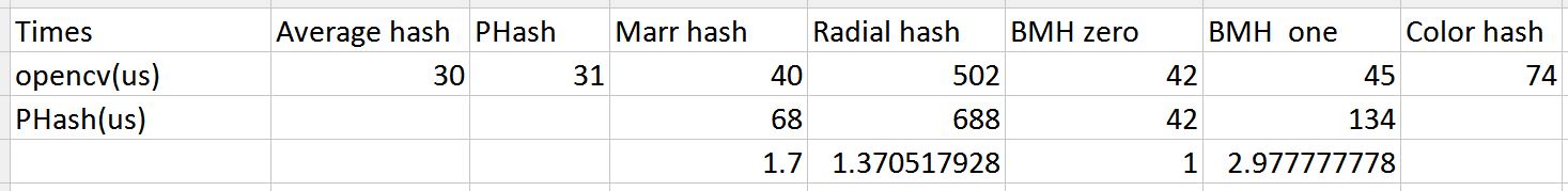 As you can see, hash computation speed of img_hash module outperform PHash library a lot.