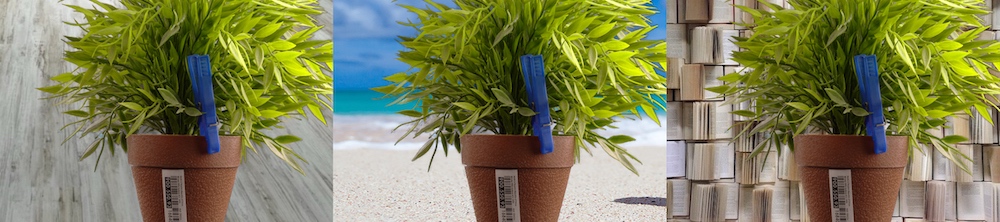 The computed alpha matte is saved as a greyscale image where the pixel values indicate the opacity of the extracted foreground object. These opacity values can be used to blend the foreground object into a diffferent backgound, as shown below: