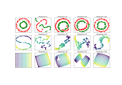 t-SNE: The effect of various perplexity values on the shape