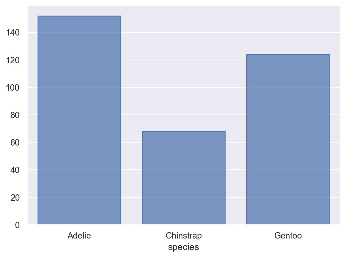 so.Plot(penguins, x="species").add(so.Bar(), so.Hist())
