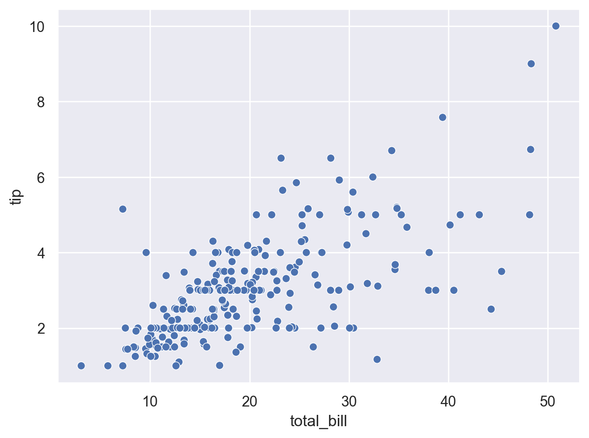 p1 = so.Plot(tips, "total_bill", "tip") p1.add(so.Dot())