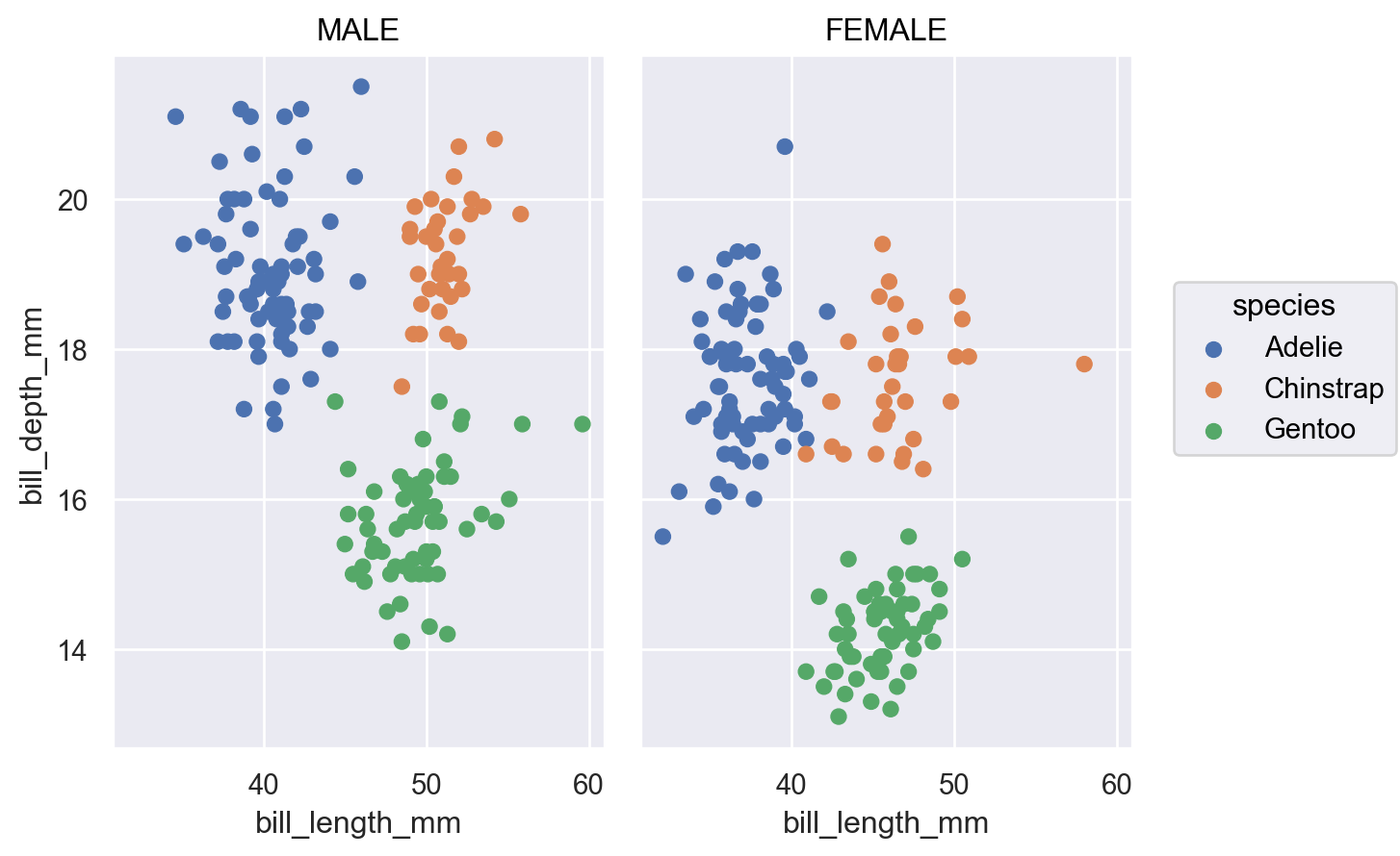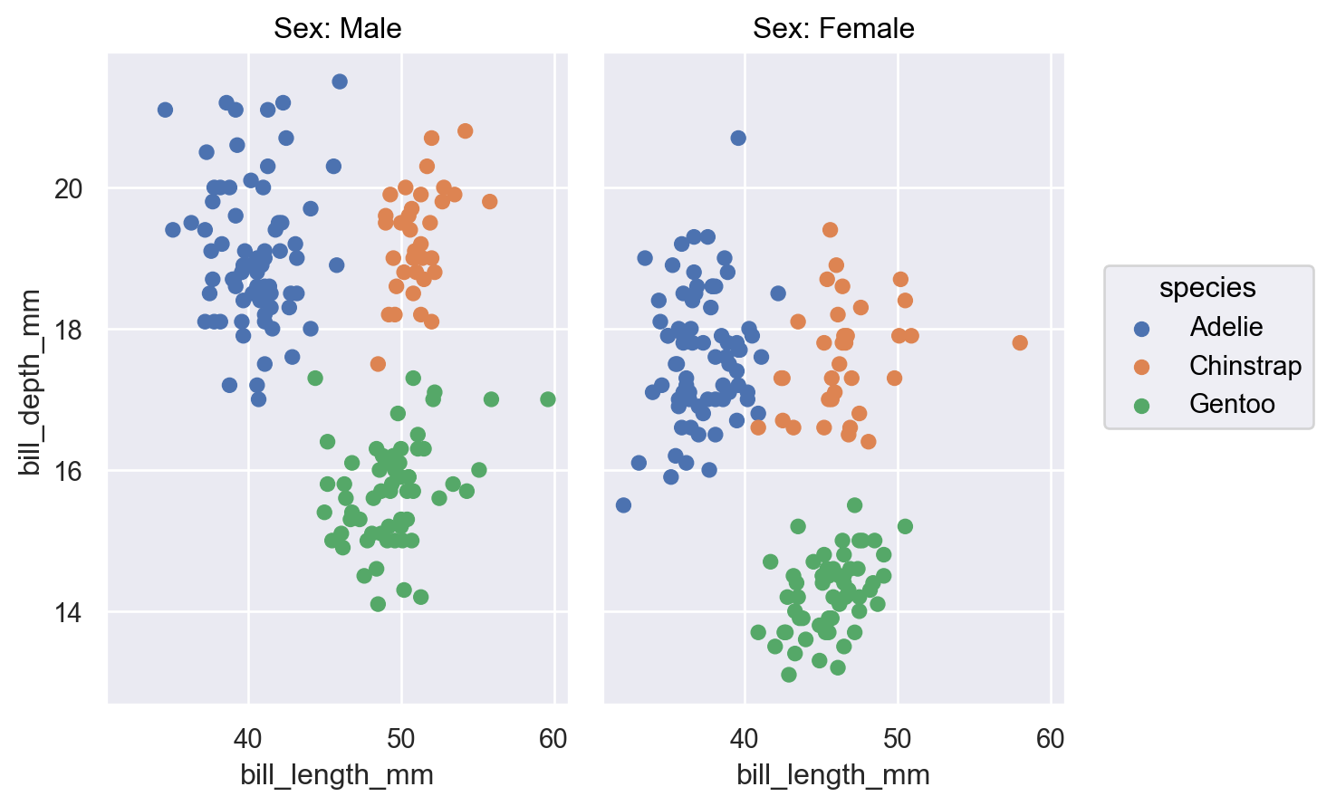col/rowparameters will add labels to the title for each facet:p.facet("sex").label(col="Sex:")